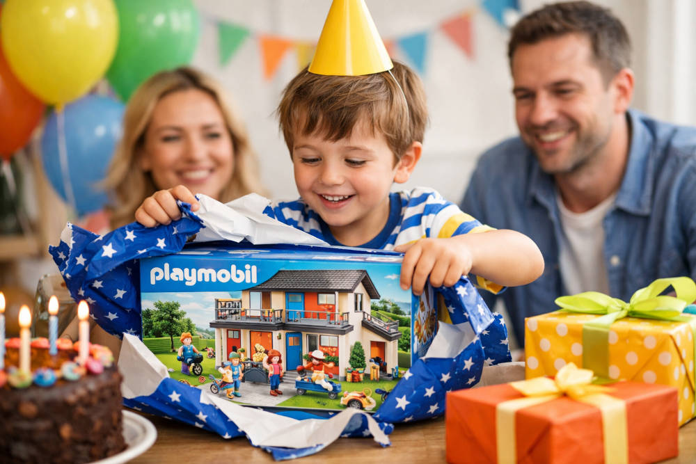 Koppel je het cadeau aan een verjaardagsthema, houd het simpel zodat het spel centraal blijft. Een klein tafereel met figuren op tafel werkt meteen als startpunt. Een speurtocht kan bijvoorbeeld draaien om een paar accessoires die je in de kamer verstopt. En een uitnodiging kan prima als foto van dat tafereel: duidelijk, herkenbaar en snel geregeld.